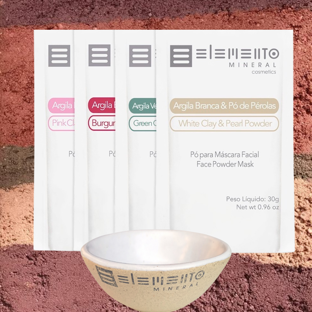 - Argila Branca com Pó de Pérolas 30g: Revitaliza e ilumina a pele, uniformizando o tom com seus ricos minerais.
