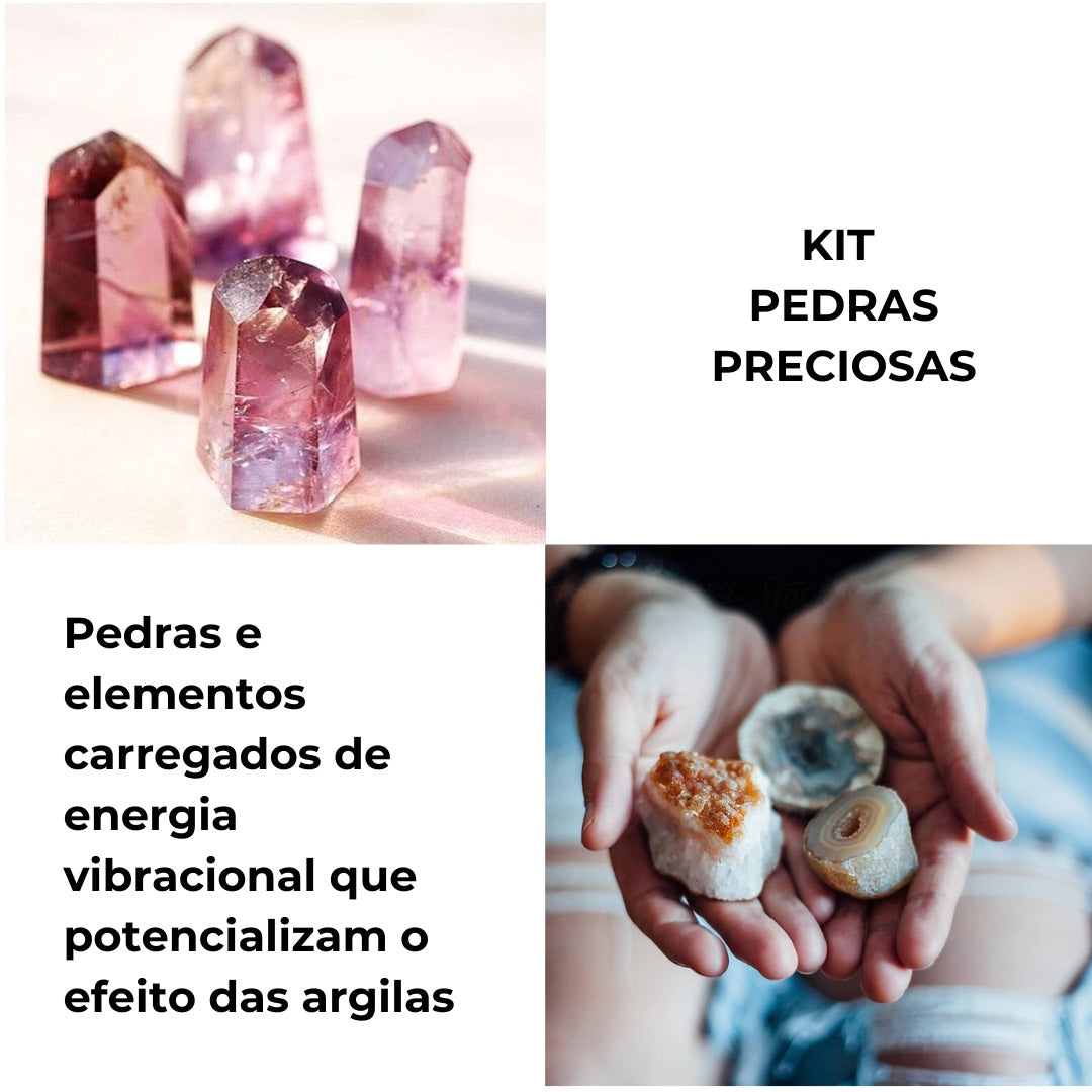 Este kit de argilas com pedras preciosas é a escolha perfeita para quem busca um tratamento de beleza natural e eficaz, combinando a pureza das argilas com a energia revitalizante das pedras preciosas.