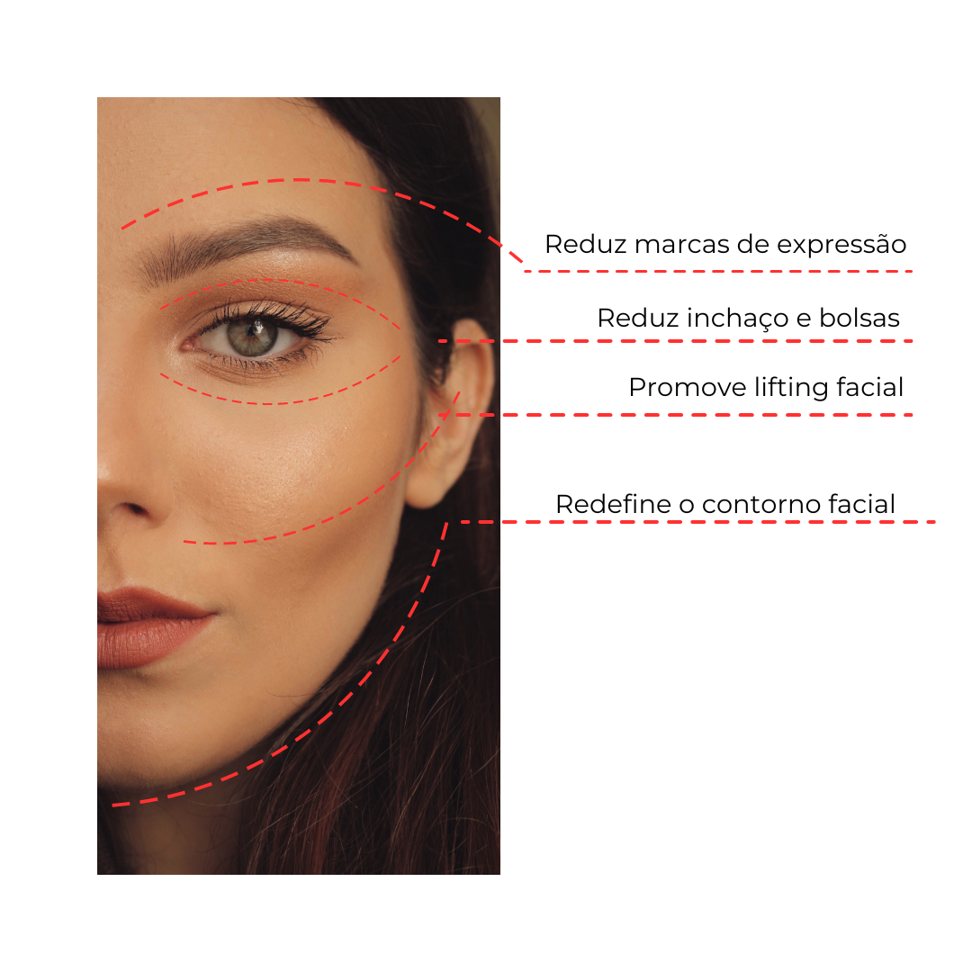 - Design Ergonômico: Adequado para todos os contornos faciais, com uma bolinha menor específica para a área delicada dos olhos.